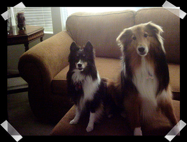 Sweet Gidget Marie (the tri on the left) settled in her forever home at the end of April 2012. She lives with her big brother, Chester, and her sister Rosie, the cat, who weighs more than her! Gidget spends most of her day playing with Chester and sometimes with Rosie. Chester is so happy to have his little sister to run around the yard with and to play a good game of tug-a-war, and pretty soon she will be running around the agility course with him. We are so happy to have Gidget in our family!